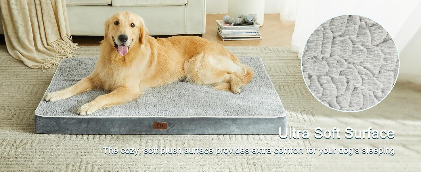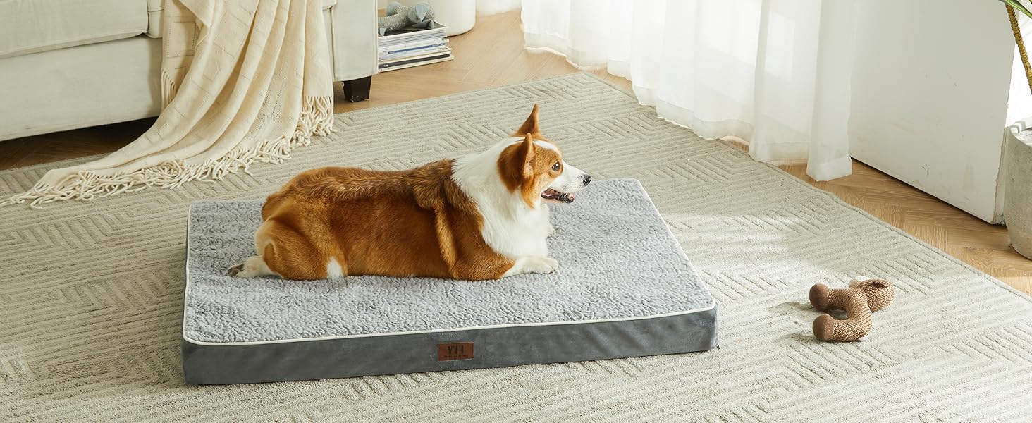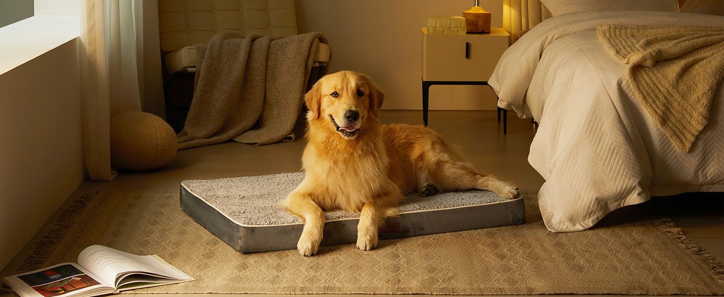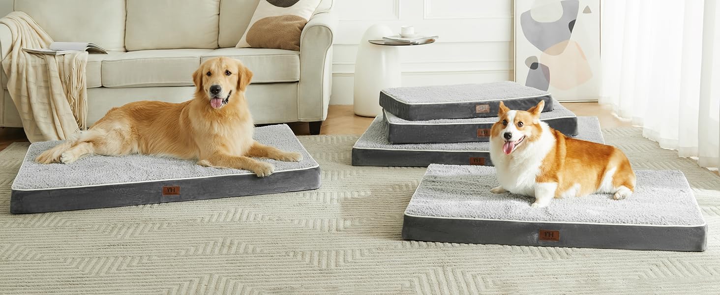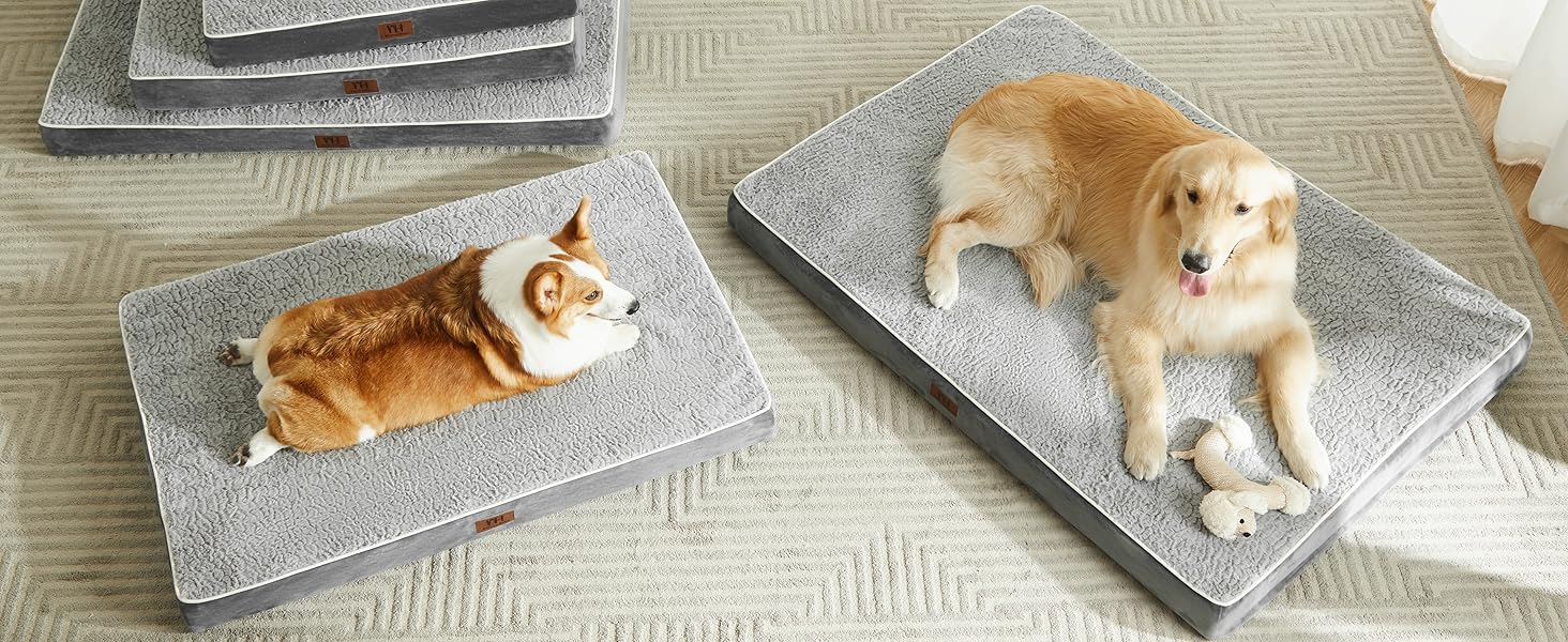 - 【Size Choice&Tips】Available in 5 sizes for all dog breeds. Our dog beds also fit perfectly in most regular dog crates. XX-Large dog pad measures 47"X29"X3.25" for dogs up to 110lbs. As the dog bed is vacuum packed, please place in the air for about 24 hours before use, the foam will just spring back to its original thickness.