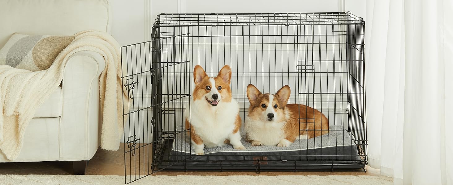 - 【Comfortable Sleeping Surface& Non-slip Bottom】With soft faux plush sleeping surface, large dog crate bed is gentle on the pet's nose and paws. Your pet will feel very comfortable and relaxed lying on the waterproof dog bed. There is also a non-slip bottom that prevents your pet from moving when they get on and off.