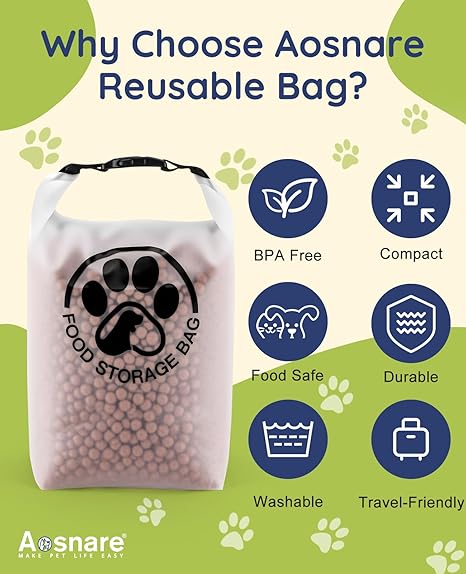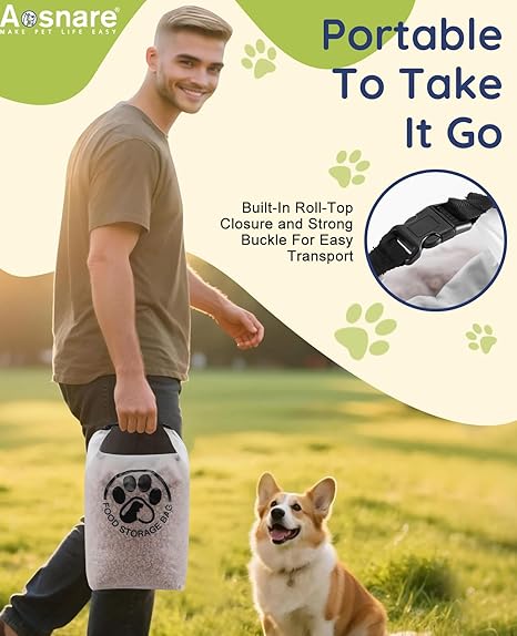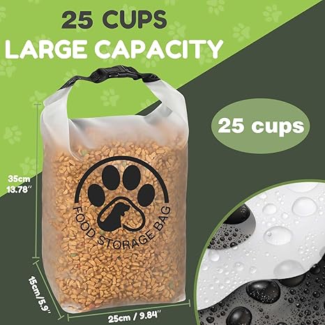Pet Food Storage Bag for Travel - Transparent Leak-Proof Dog Food Container with Roll-Top Closure, Keeps Kibble Fresh for Camping Trip, Dog Boarding, Weekend Getaways (14 Cups)