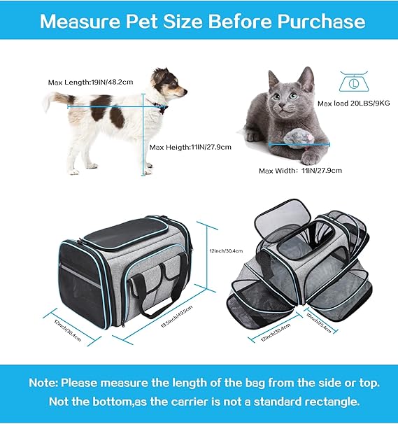 Airline Approved Pet Carrier, Large Soft Sided Pet Travel TSA Carrier 4 Sides Expandable Cat Collapsible Carriers with Removable Fleece Pad and Pockets for Cats Dogs and Small Animals