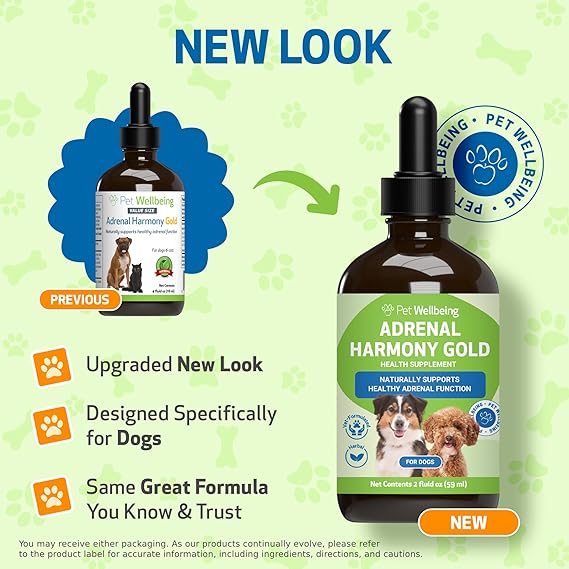 Pet Wellbeing Adrenal Harmony Gold for Dogs - Vet-Formulated - Adrenal Gland Supplement for Dogs, Ashwagandha, Astragalus, Bacopa, Holy Basil - Herbal Supplement - 4 oz (118 ml)