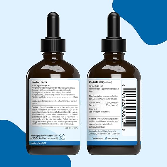- VETERINARIAN-FORMULATED FOR FELINE BLOOD SUGAR: Specially crafted for cats, this herbal liquid supplement provides natural support for healthy blood sugar levels. Featuring Gymnema Sylvestre (the "sugar destroyer"), Fenugreek, and Devil’s Club, it helps maintain normal glucose metabolism.