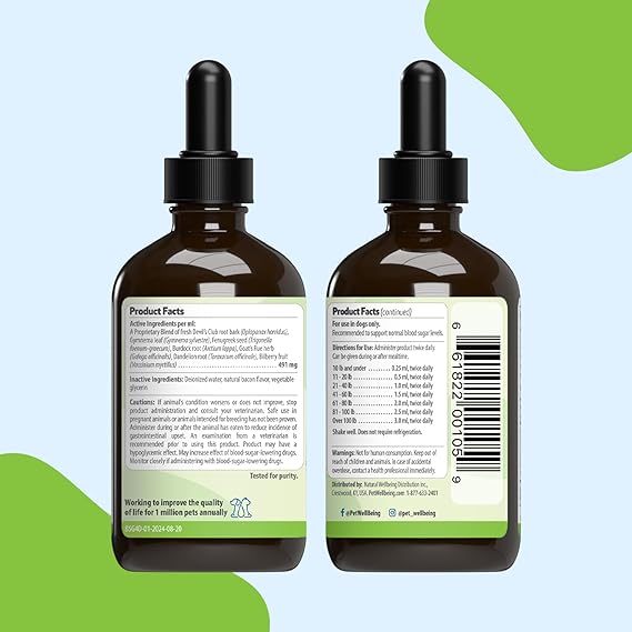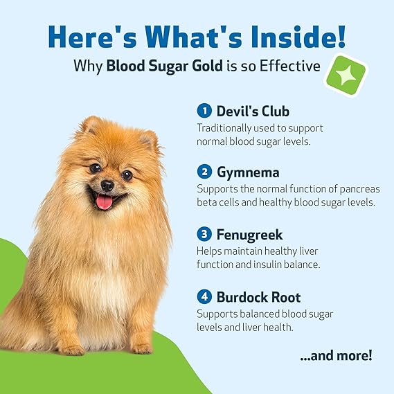 Pet Wellbeing Blood Sugar Gold Dogs - Holistic Blood Sugar Support, Pancreas & Liver Health, Gymnema, Fenugreek & Devil’s Club - NASC Certified & Vet-Formulated - 2 oz Liquid