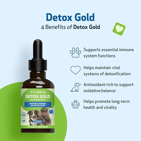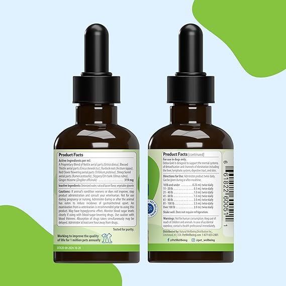 Pet Wellbeing Detox Gold for Dogs - Gentle Detoxification & Elimination Support, Immune System Care, Nettle, Blessed Thistle, Burdock Root - Veterinarian-Formulated Herbal Supplement 2 oz (59 ml)