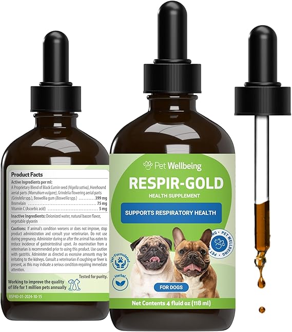 Pet Wellbeing Respir-Gold for Dogs - Supports Healthy Breathing, Open Airways, Respiratory Support, Black Cumin, Horehound, Grindelia - Veterinarian-Formulated Herbal Supplement 2 oz (59 ml)
