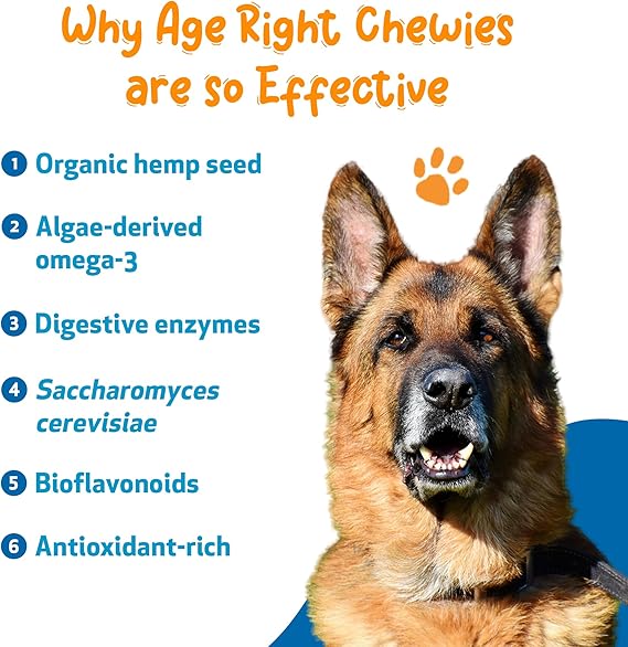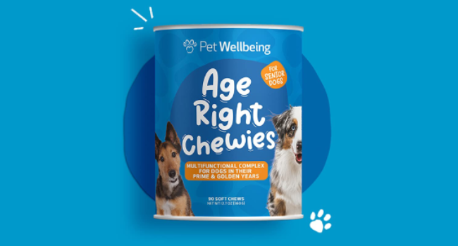 Pet Wellbeing Age Right Chewies for Dogs in their Prime & Senior Years - Daily Multifunctional, Support for Joint Mobility, Immune & Heart Health, Energy Levels - Veterinarian-Formulated 90 Soft Chews