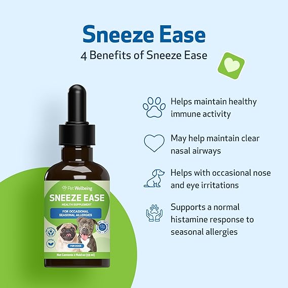 Pet Wellbeing Sneeze Ease for Dogs - Occasional Sneezing, Seasonal Allergies, Nose & Eye Discomfort, Eyebright, Nettles - Veterinarian-Formulated Herbal Supplement 2 oz (59 ml)