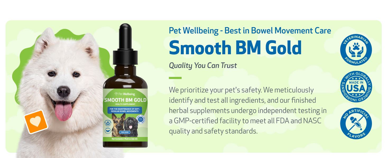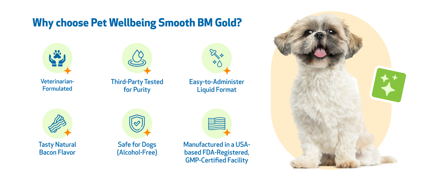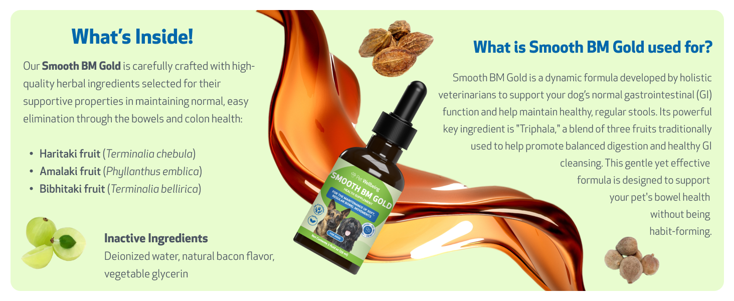 Pet Wellbeing Smooth BM Gold for Dogs - Vet-Formulated Digestive Health Support - Healthy Bowel Movements, Natural Regularity - Herbal Dog Digestive Supplement - Liquid Formula 2 oz (59ml)