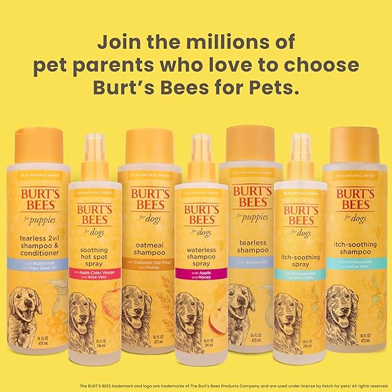 Burt's Bees for Pets Tear Free Puppy Shampoo and Conditioner - Tearless Dog Wash for Puppies, Pet Grooming Supplies, Gentle Dog Shampoo and Conditioner, Puppy Essentials for Easy Groom, 16 Fl Oz
