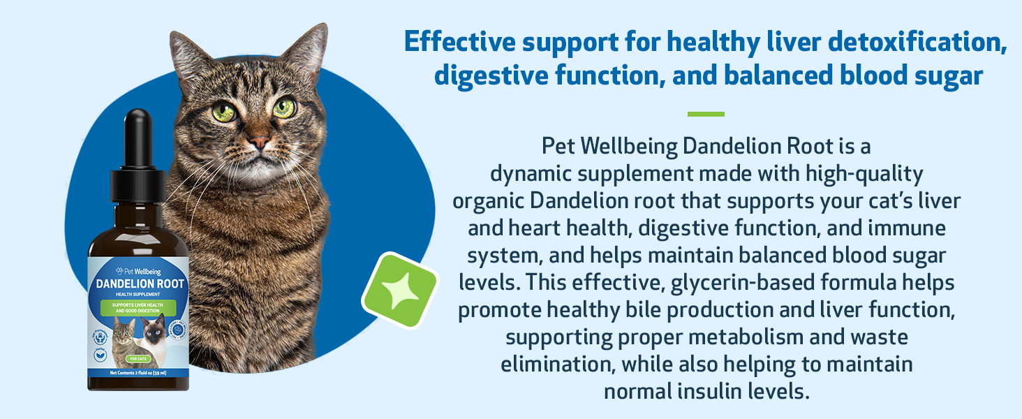 Pet Wellbeing Dandelion Root for Cats - Liver & Heart Health, Digestive Function, Blood Sugar Support, Certified Organic - Veterinarian-Formulated Herbal Supplement 2 oz (59 ml)