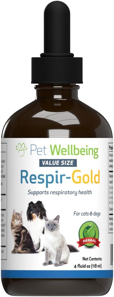 Pet Wellbeing Respir-Gold for Cats - Supports Healthy Breathing, Open Airways, Respiratory Support, Black Cumin, Horehound, Grindelia - Veterinarian-Formulated Herbal Supplement 4 oz (118 ml)