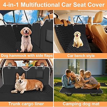 - 4-in-1 Multifunctional: The dog seat cover is designed not only as a dog hammock with side wings, but also as a bench car seat cover protector, or a trunk cargo liner. When taken off the car and unfold flat, it can be transformed into a camping mat, allowing your family and friends and lovely pets to share the sunshine and have a picnic together