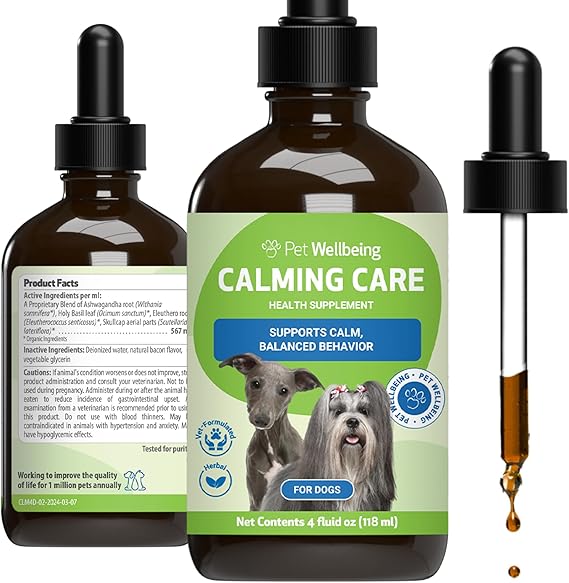 Pet Wellbeing Calming Care for Dogs - Veterinarian-Formulated - Calm Support, Relaxed Nervous System, Emotional Balance, Adaptogens - Herbal Supplement 4 oz (118 ml)