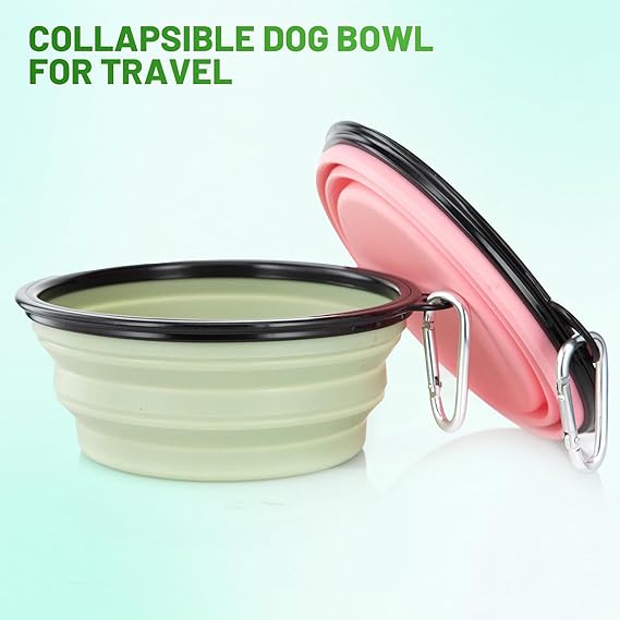 - PORTABLE & CONVENIENT: The collapsible pet feeding and watering bowls are lightweight and easy to carry,can be folded down to a compact size,making them easy to store in bags or cars.Come with 2 carabiners, the compact travel bowls can be attached to belt loop,backpack,dog leash,dog collars,dog carrier,bags,luggage and more.Suitable for outdoor/indoor acitivies,outings and trips.