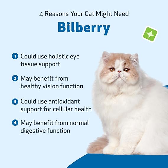 - POWERFUL ANTIOXIDANT SUPPORT FOR FELINE EYES & CAPILLARIES: Rich in anthocyanins and flavonoids, Bilberry provides powerful antioxidant protection against oxidative stress that damages delicate eye tissues and blood vessels. Ideal for senior cats, cats who need thyroid support, and breeds who experience eye challenges like Persians, Himalayans, Siamese, Abyssinians, and Maine Coons.