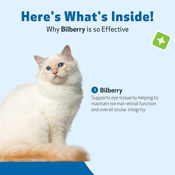 - ️ SUPPORTS HEALTHY VISION & VASCULAR HEALTH IN CATS: Unlike generic eye supplements with synthetic vitamins, our full-spectrum Bilberry extract delivers comprehensive support for vision and the tiny capillaries that nourish eye tissues. This product helps maintain normal capillary strength, supports blood vessel health around the eyes, and promotes healthy retinal function.