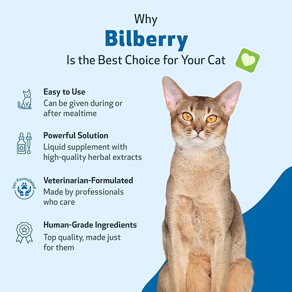 - LIQUID FORMAT - SUPERIOR ABSORPTION & VALUE FOR PICKY CATS: Unlike tablets or capsules that cats resist, our liquid Bilberry extract is easy to administer—offer during mealtime or give directly. Fast-absorbing and bioavailable for maximum effectiveness. More powerful concentration means better value: A 2 oz lasts 4 months for most cats. Gentle herbal formula without harsh chemicals or synthetic additives. Perfect for picky cats.