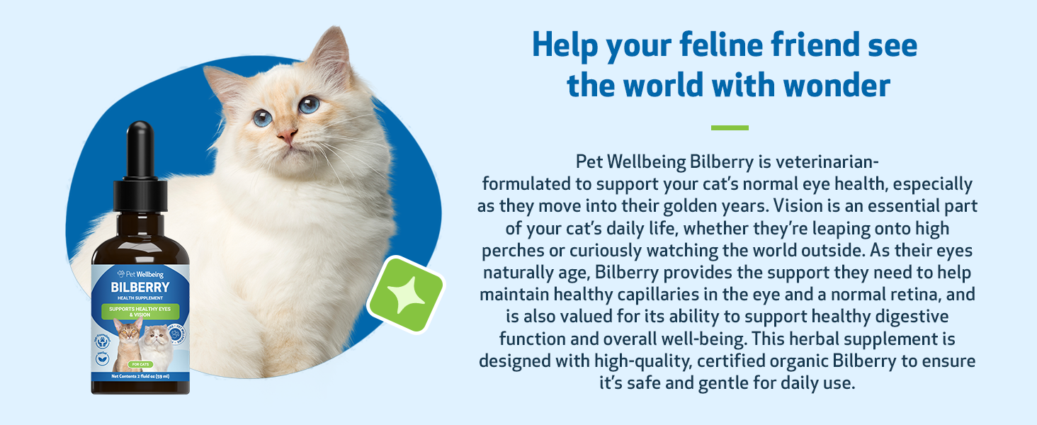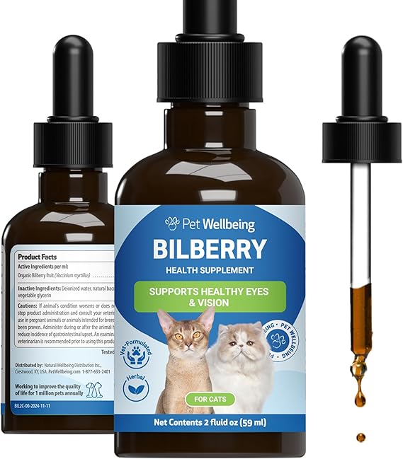 Pet Wellbeing Bilberry for Cats - Eye & Vision Support with Antioxidants, Capillary Health, Retinal Support - NASC Certified & Vet-Formulated - 2 oz Liquid