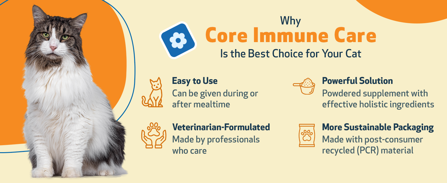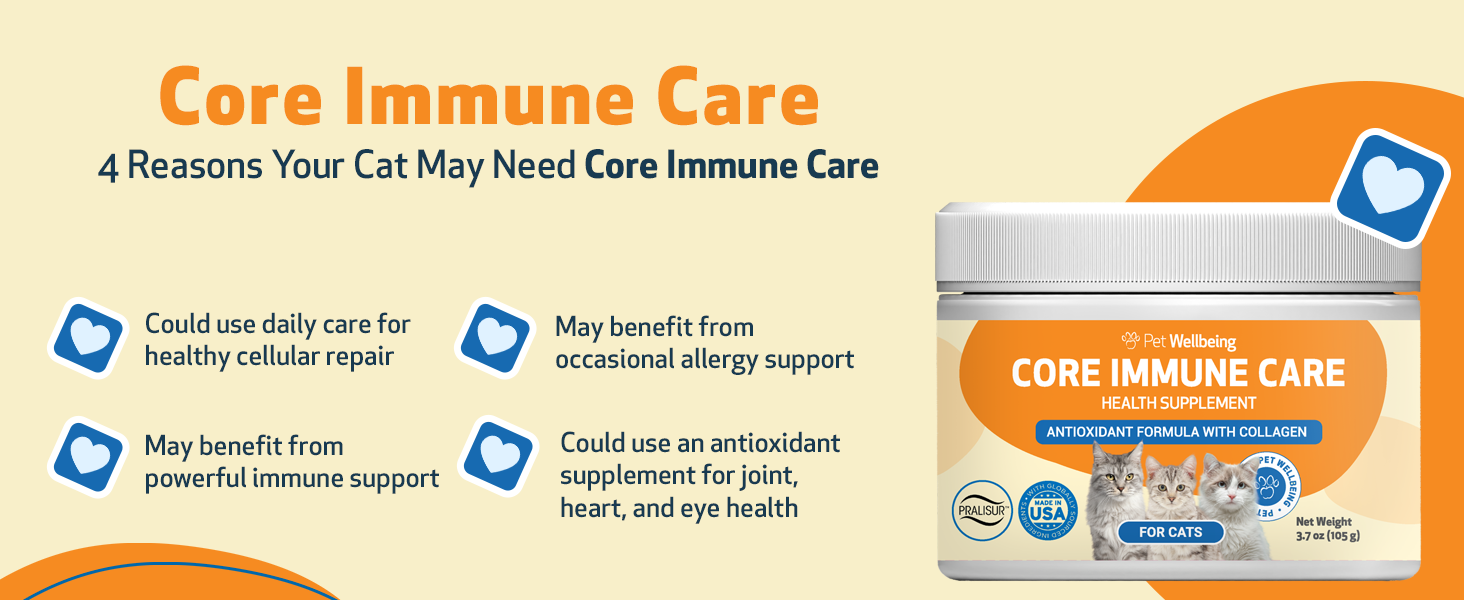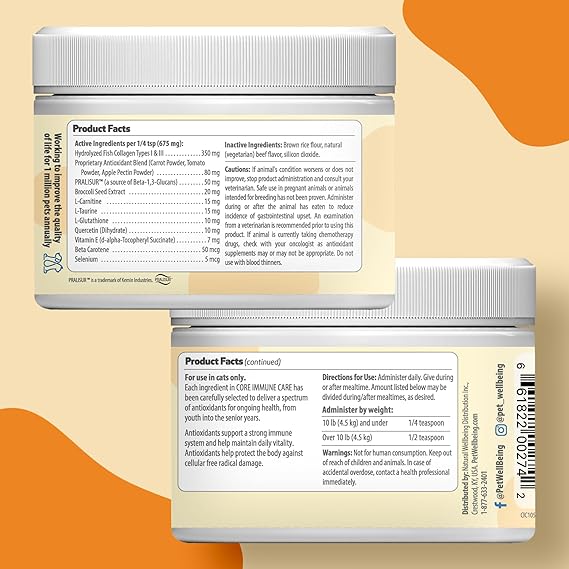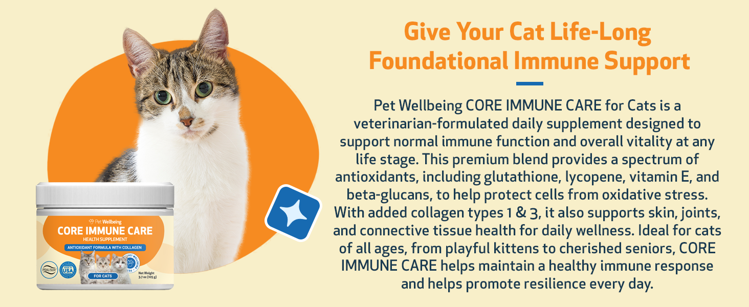 Pet Wellbeing Core Immune Care for Cats of All Ages - Daily Antioxidants, Immune Support, Collagen, Glutathione, Vitamin E - Veterinarian-Formulated Holistic Supplement 3.7 oz (105 g) Powder