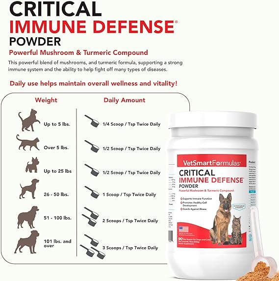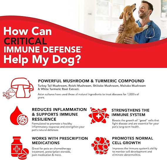 Critical Immune Defense for Dogs & Cats; Supports Normal Cell Growth - Turkey Tail, Reishi, Shiitake and Maitake Mushroom Formula with Patented White Turmeric Root Extract - 30-Day Supply