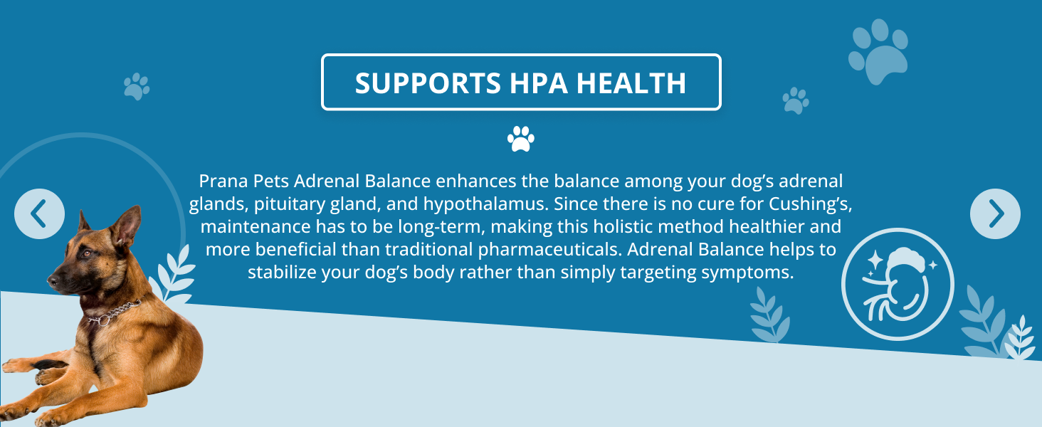 - ๐๐๐ฅ๐๐ก๐๐ ๐๐๐๐๐ก๐๐ ๐ ๐๐๐๐ - Prana Pets Adrenal Balance effectively aids in treating the common symptoms of Cushingโs Disease in dogs. Simply administer the recommended drops into their mouth or add it to their wet or dry food daily.