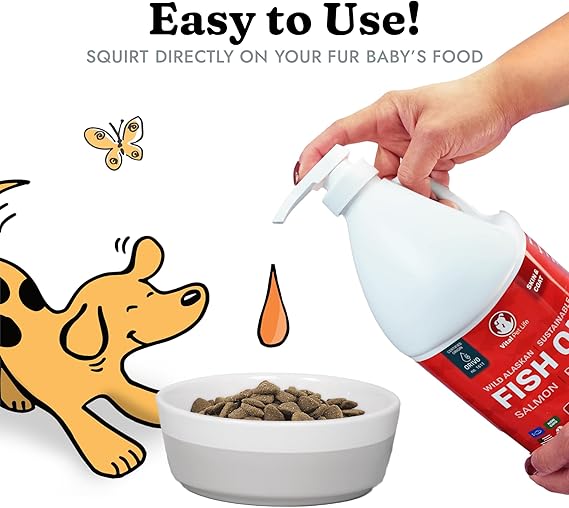 Fish Oil for Dogs - Healthy Skin & Coat, Salmon, Pollock, All Natural Supplement for Pets, Itching Scratching Allergy & Inflammation Defense, Omega 3 EPA DHA, Brain & Heart Health, 64 oz