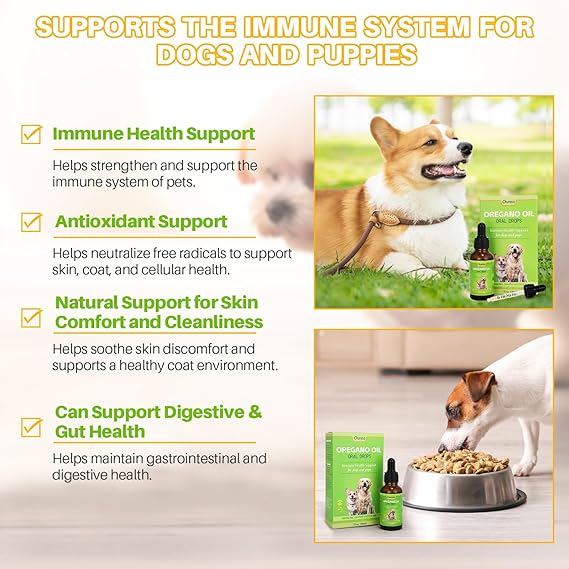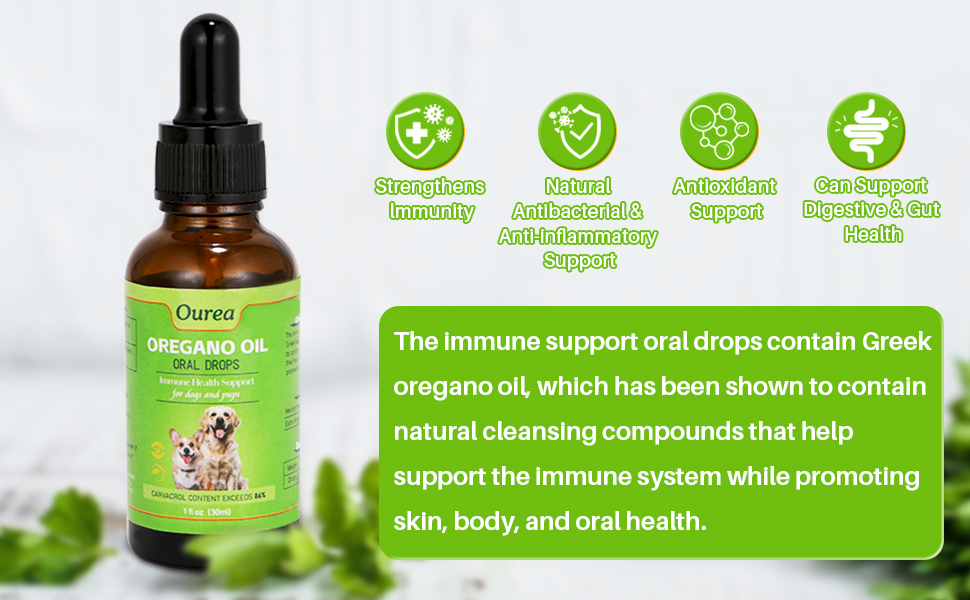 - Natural Oregano Essence, Easily Protect Your Dog's Immunity: Ourea organic pure oregano oil drops are specially designed for daily immune support. The organic oil of oregano are blended with extra virgin olive oil. The gentle formula is suitable for long-term use and is suitable for all kinds of dogs. Supplementing regularly can help build a good immune foundation, build a protective barrier in the body for your pet, and help you calmly cope with daily environmental challenges.