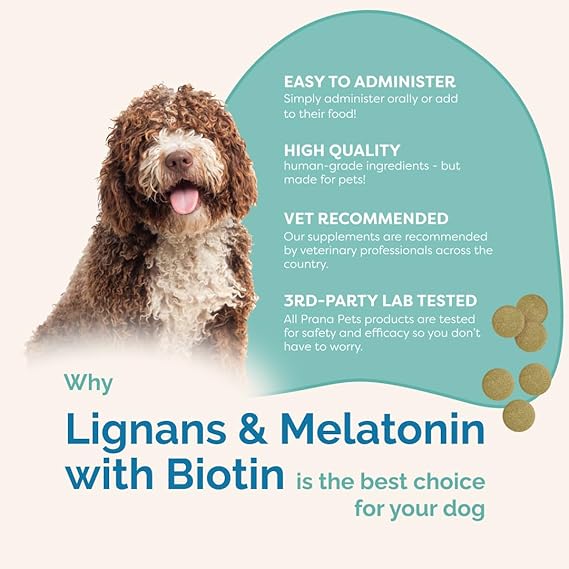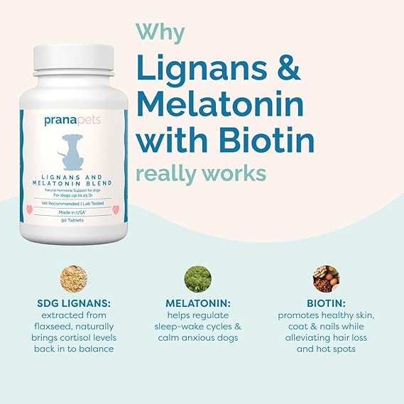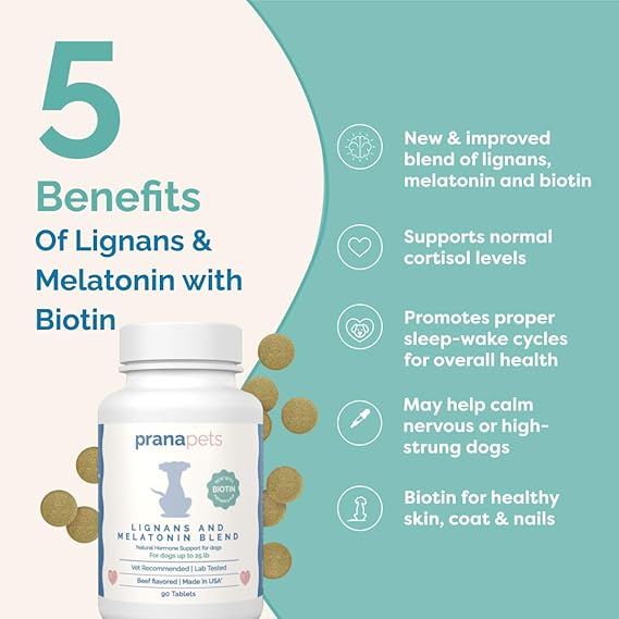 PranaPets Lignans & Melatonin with Biotin Blend Naturally Aids in Relieving Symptoms of Cushingโs in Dogs up to 25 lb | Promote Healthy Balance & Overall Well-Being