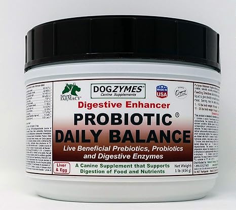 Dogzymes Probiotic Daily Balance - Supplies Nutritional Support and Live microorganisms for intestinal Well-Being as Well as enzymes for Proper Digestion. Liver and Egg Base. (1 Pound)