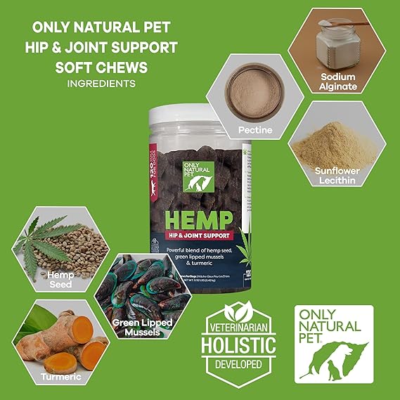 - SUPPORTS HEALTHY INFLAMMATORY RESPONSE - Only Natural Pet Hemp Hip & Joint Support is a natural Dog hip joint supplement that promotes a healthy inflammatory response. It helps reduce inflammation, which is often associated with joint discomfort and stiffness, promoting overall joint health.