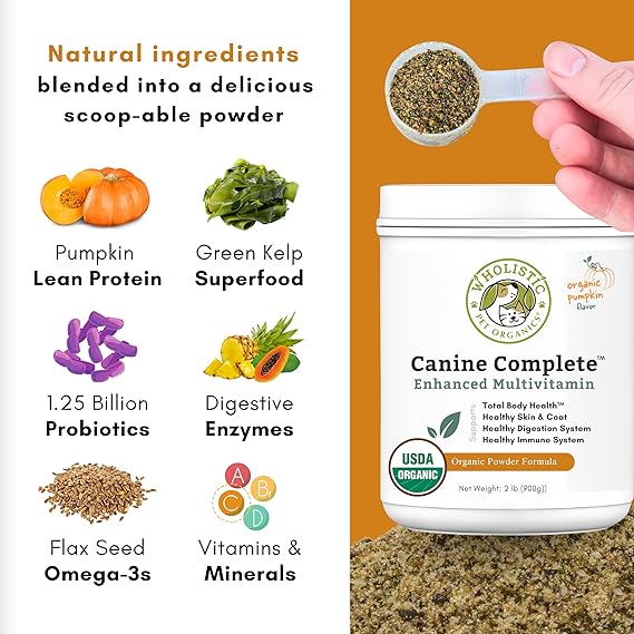 Wholistic Pet Organics Canine Complete - Dog Multivitamin Powder - 1 Lb - Daily Dog Vitamins and Supplements for Homemade Food - Immune System, Skin, Coat & Overall Health - Small and Large Breed