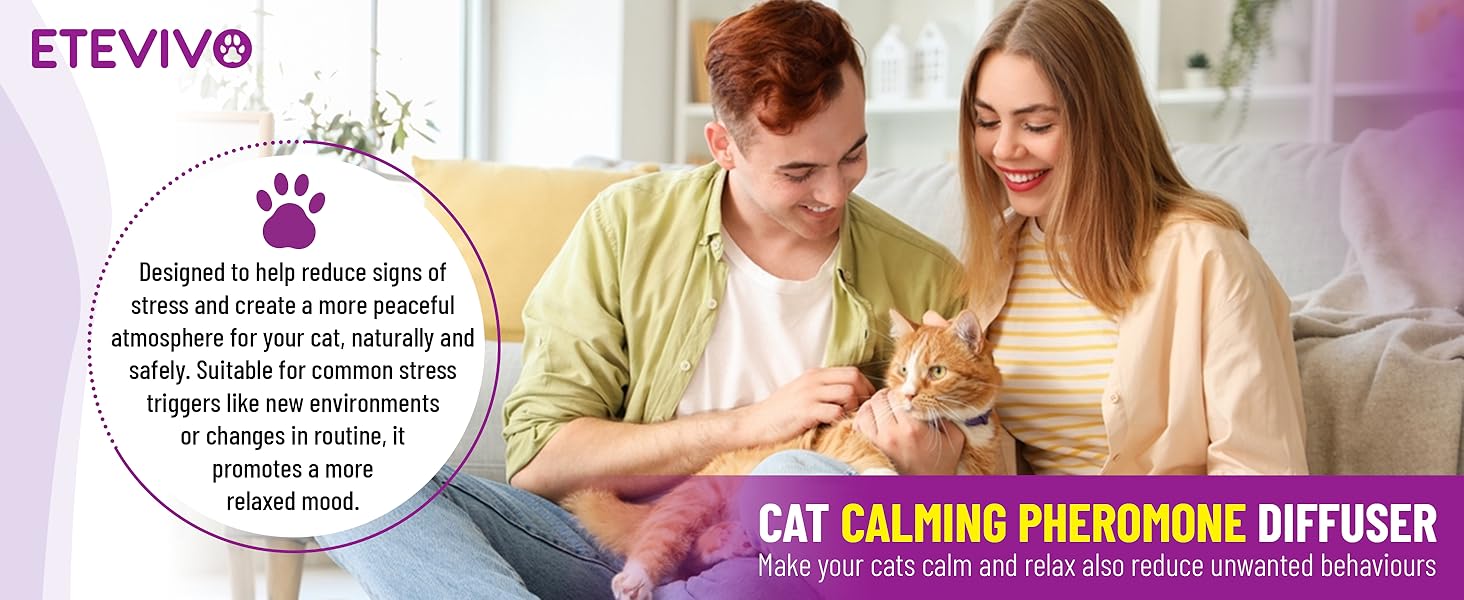 - EFFORTLESS RELAXATION - The ETEVIVO cat pheromones calming diffuser is easy to use with its plug and play design, simply plug it into your chosen room and let the cat pheromones work their magic, no daily maintenance or complex setup is required just effortless relaxation for your cat and peace of mind for you