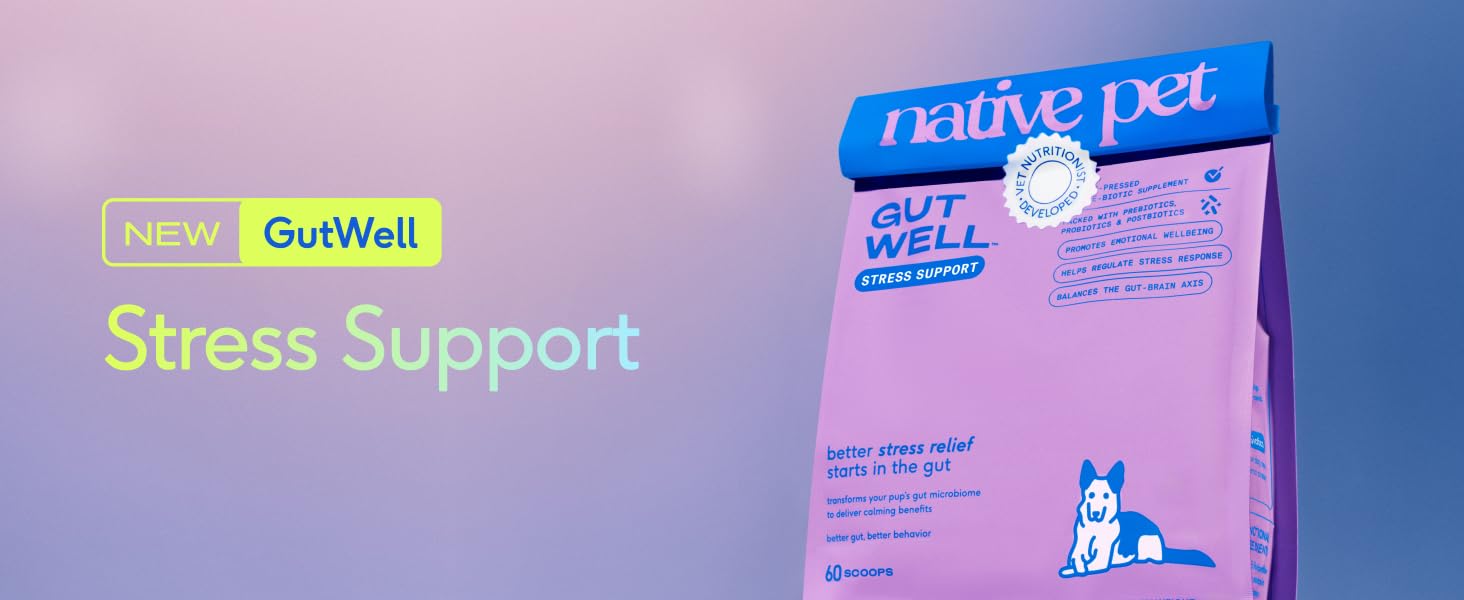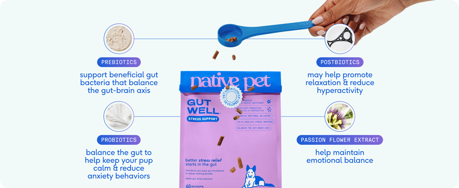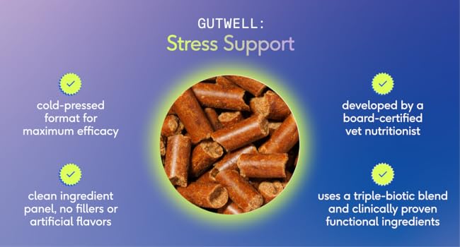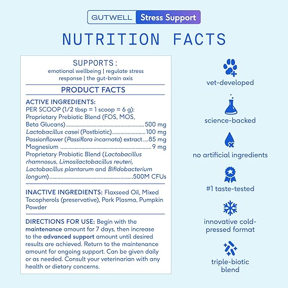 GutWell Stress Support - Dog Anxiety Relief & Calming Treats - Tasty Food Topper for Dog Stress and Anxiety Relief - Support Gut-Brain Axis with Triple-biotic Blend & Magnesium - 60 Scoops