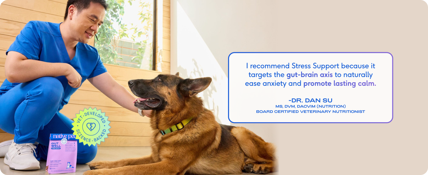 - GUT-BRAIN AXIS REGULATES MOOD FROM WITHIN:Triple-biotic blend targets the gut-brain connection to support mood and stress signals, providing effective dog calming and gut-first dog separation anxiety relief to help your pup stay cool, calm, and collected.