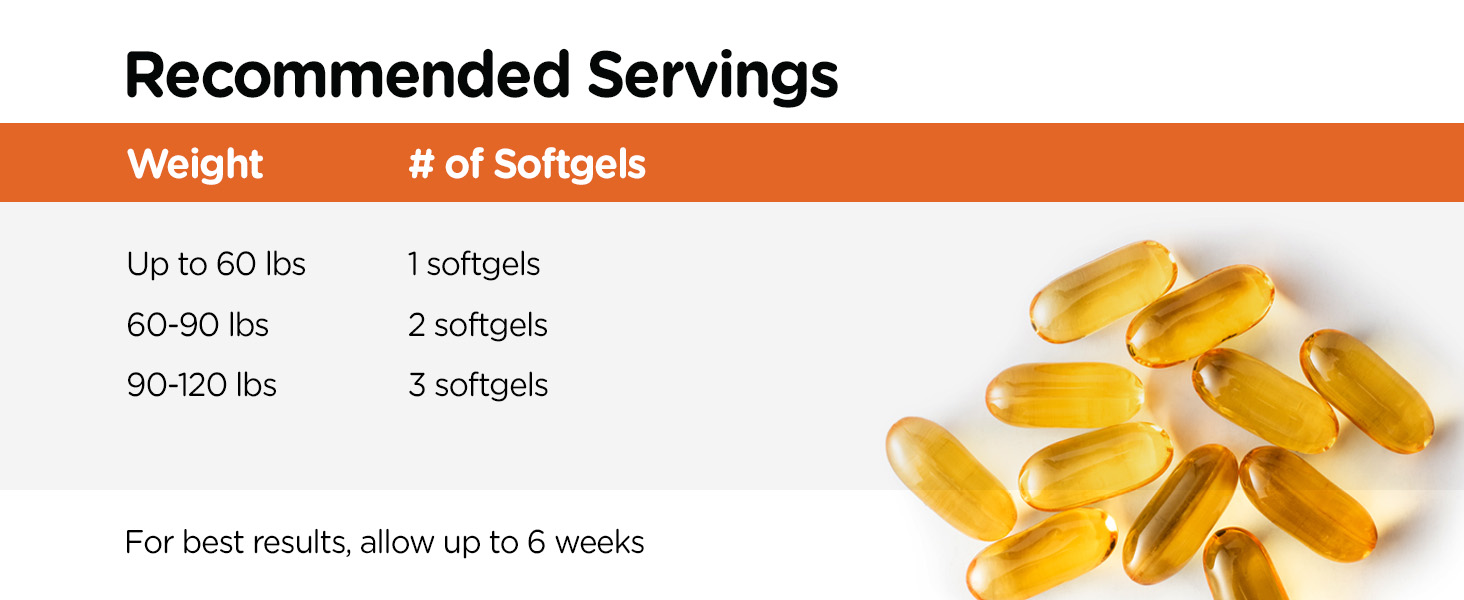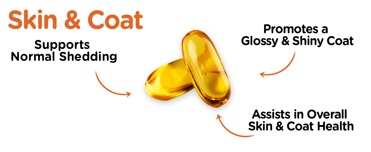 Nutri-Vet Fish Oil Soft Gels provide the most convenient and effective way to give your dog the essential nutrients they need to support skin and coat health. Formulated as a tasty treat, these soft gels contain 300mg of Omega-3 fatty acids, including EPA and DHA, along with Vitamins A, D, and E to help maintain a healthy coat and promote overall well-being. Whether you're looking for a supplement for your dog’s coat defense, skin and coat supplement, or itch relief for dogs, Nutri-Vet Fish Oil Soft Gels are the perfect choice. Our fish oil for dogs is specially designed to support dog skin and coat health while also boosting your pet’s immune system. Rich in Omega-3 fish oil, this supplement works to relieve itching, dry skin, and promotes a shiny coat. It’s an essential part of your dog’s daily health regimen, particularly for breeds prone to itchy skin, shedding, and dull coats. Nutri-Vet offers premium-quality dog supplements, including vitamins for dogs and skin and coat relief for dogs. Nutri-Vet Fish Oil Soft Gels are easy to give and formulated with high palatability to ensure your dog enjoys their daily dose of health-boosting Omega-3 fatty acids. Perfect for pets that need Omega-3 fish oil or want to improve their coat health, these supplements are designed to make a difference in your dog’s overall wellness. Whether you need Omega 3 DHA, Omega 3 fish oil for dogs, or essential vitamins for dogs, Nutri-Vet has you covered with our comprehensive line of dog health supplies and dog must-haves. Promote your dog’s health and vitality with Nutri-Vet Fish Oil Soft Gels, a trusted supplement for pet owners who want the best for their furry companions.
