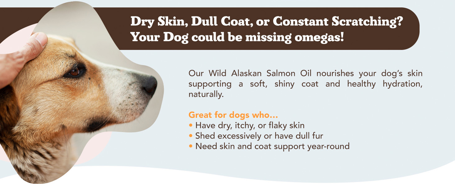 - SKIN, COAT & ALLERGY SUPPORT: Rich in OMEGA 3, EPA, and DHA, our Wild Alaskan Salmon oil for dogs helps relieve dry, itchy skin, reduce shedding, and calm irritation from seasonal allergies. This fish oil for dogs skin and coat delivers visible results softer fur, fewer hot spots, and less scratching making it a must have dog supplement for dry skin and coat.