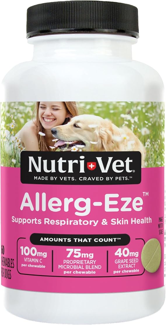 Nutri-Vet Allerg-Eze Chewables for Dogs, Antioxidants & Omega-3 Fatty Acids, Allergy Relief Supplement, Supports Skin, Coat & Respiratory Health, 60 Count