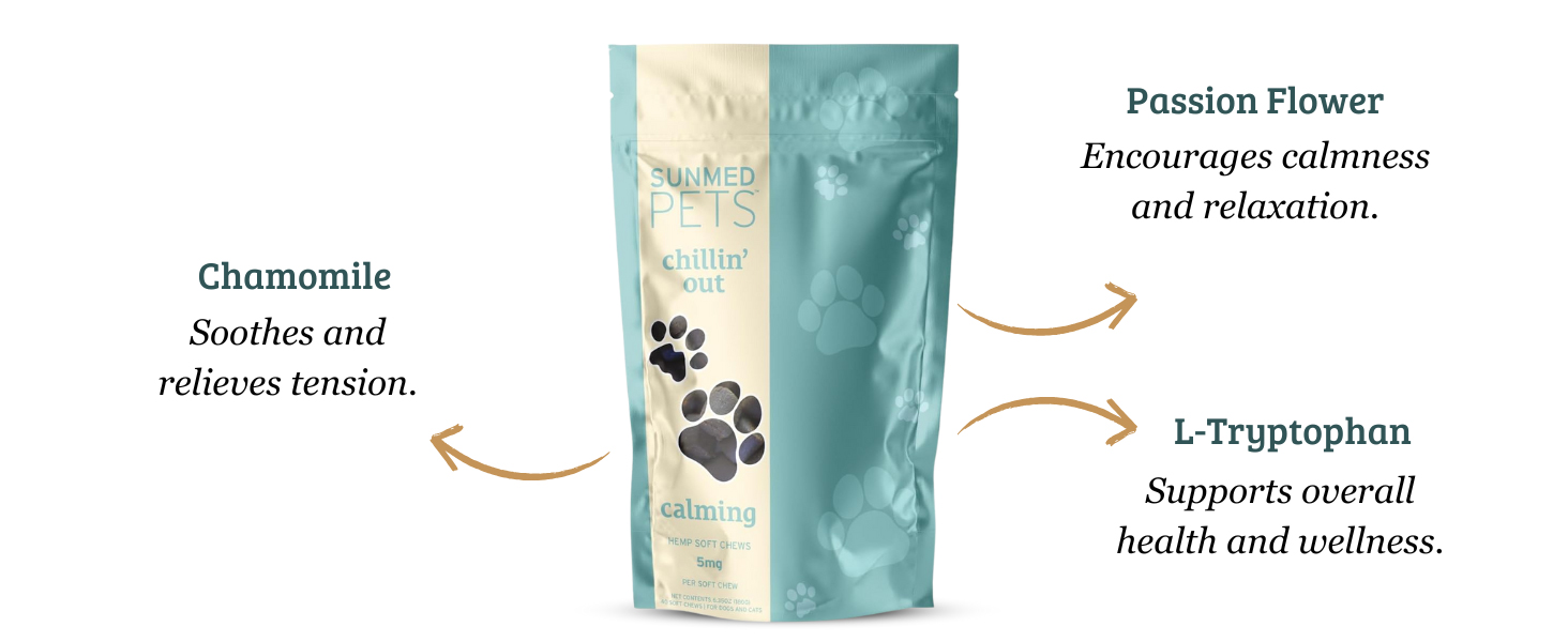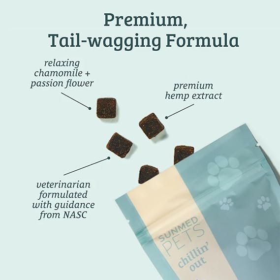 Sunmed Chillin' Out Hemp Dog Chews with Chamomile & L-Tryptophan - Stress Relief, Calming & Relaxation for Dogs - Helps with Anxiety & Stressful Situations - 40 Count