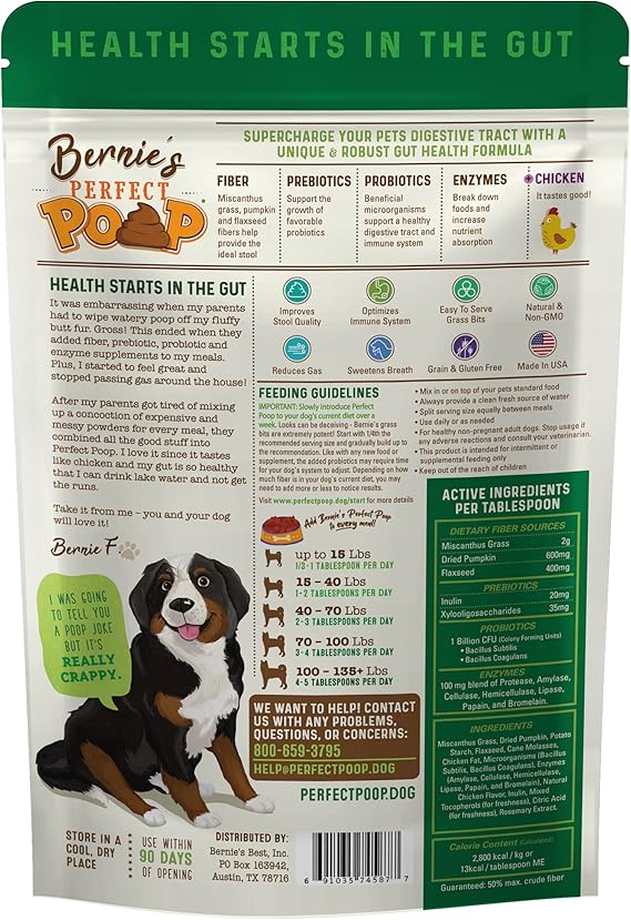 - HEALTH STARTS IN THE GUT: High Fiber Grass Bits naturally revitalize your pet's digestive tract to relieve digestive issues including diarrhea, constipation, upset stomach, stalled digestion, bloating and food intolerance; Reduces gas, stool odor, bad breath and firms up poop