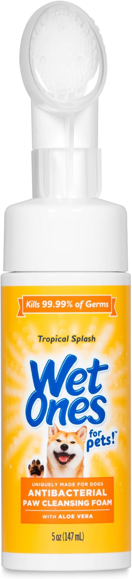 Wet Ones for Pets Antibacterial Dog Paw Cleaner with Built-in Scrubber Brush, Tropical Splash Scent - Foaming Cleanser for Dog Paws - Paw Washer & Grooming Care, 5 Ounce
