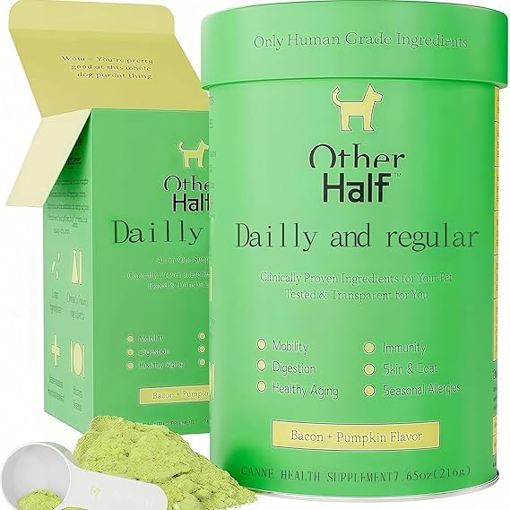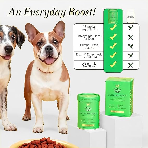 Other Half Dog Supplement - Daily Support for Joints, Gut, Allergies, Immune System, Urinary Tract, Skin, and Coat. Contains chondroitin, Omega-3, probiotics, and 45 Active Ingredients