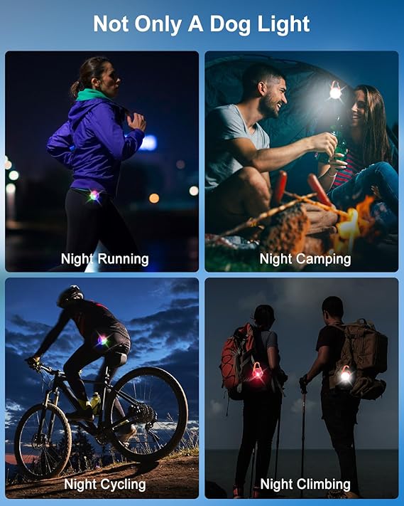 - 【Easy Clip-On Dog Light】Equipped with a robust carabiner-style clip, our safety dog collar light is suitable for dogs of all sizes. You can easily attach and remove the light from your dog's collar, harness, or leash. It also serves various other purposes, including night running, cycling, camping, climbing, and more.