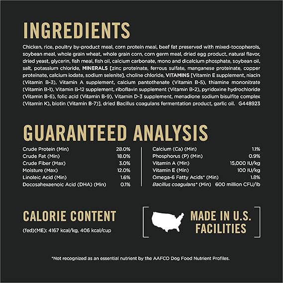 Give your puppy a great start in life by serving him the complete and balanced nutrition in Purina Pro Plan Puppy Sensitive Skin and Stomach Lamb and Oat Meal Formula dry puppy food. Rich in the nutrients growing puppies need during their first year of development, this puppy kibble features lamb as the first ingredient and oat meal, which is gentle on his stomach. Omega-6 fatty acids in sunflower oil along with vitamin A nourish his skin and coat, while antioxidants support his developing immune system. This sensitive stomach dog food also contains natural prebiotic fiber that nourishes specific intestinal bacteria, and we fortify Purina Pro Plan puppy food with guaranteed live probiotics for digestive and immune health. To support brain and vision development, we include DHA from omega-rich fish oil. Your puppy's bones and teeth get the needed support from the calcium, phosphorus and other minerals in this targeted lamb and rice dog food, which contains no artificial colors or flavors.