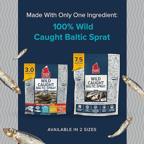 PLATO Pet Treats Fish Dog Treats - Air-Dried, Single Ingredient Dog Treat - with Omega 3 & 6 Fatty Acids to Support Skin and Coat - 100% Whole Fish - Wild Caught Baltic Herring Dog Treats - 3oz