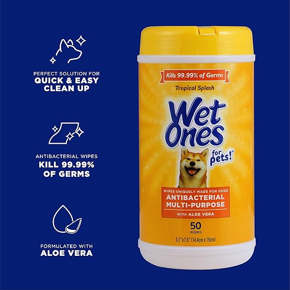 Wet Ones for Pets Multi-Purpose Dog Wipes With Aloe Vera | Dog Wipes For All Dogs in Tropical Splash, Wet Ones Wipes for Paws & All Purpose | 50 Ct Cannister Dog Wipes