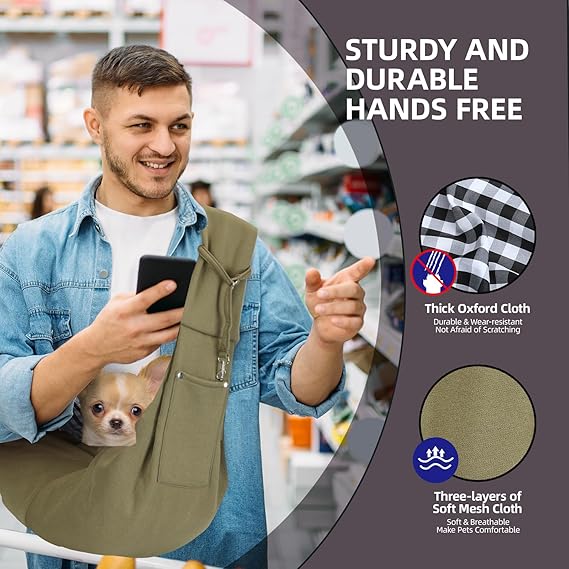 - 【Multi-purpose】:The dog sling has a large opening and can be easily put into the pet, which is very convenient for us to use. A dog sling can take your pet to the mall, the grocery store, the park, as well as daily walks, and it can provide a comfortable and skin-friendly place for your pet to stay happy together.