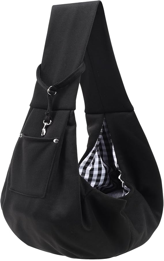 Dog Carrier Sling - Reversible Puppy Carrier Purse with Storage Pocket, Hand-Free Dog Sling Carrier for Carry Small Dogs and Cats, Travel Safety Harness, Dog and Cat Harness(Black)