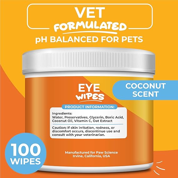 Dog Eye Wipes - Hypoallergenic Eye & Face Wipes for Dogs, Cats, & Puppy - Pet Tear Stain Remover & Cleaner - Gently Cleans & Removes Discharge, Crust, & Gunk (Coconut)