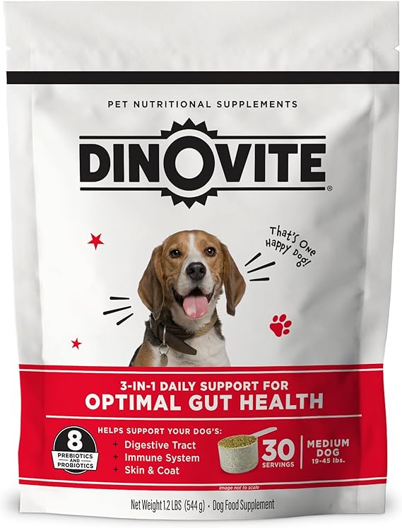 Dinovite Probiotic Supplement for Dogs - Omega 3 - Hot Spot Relief - Skin & Coat Supplement - 30 Day Supply (30 Day Supply, Large Dogs (45+ lbs))