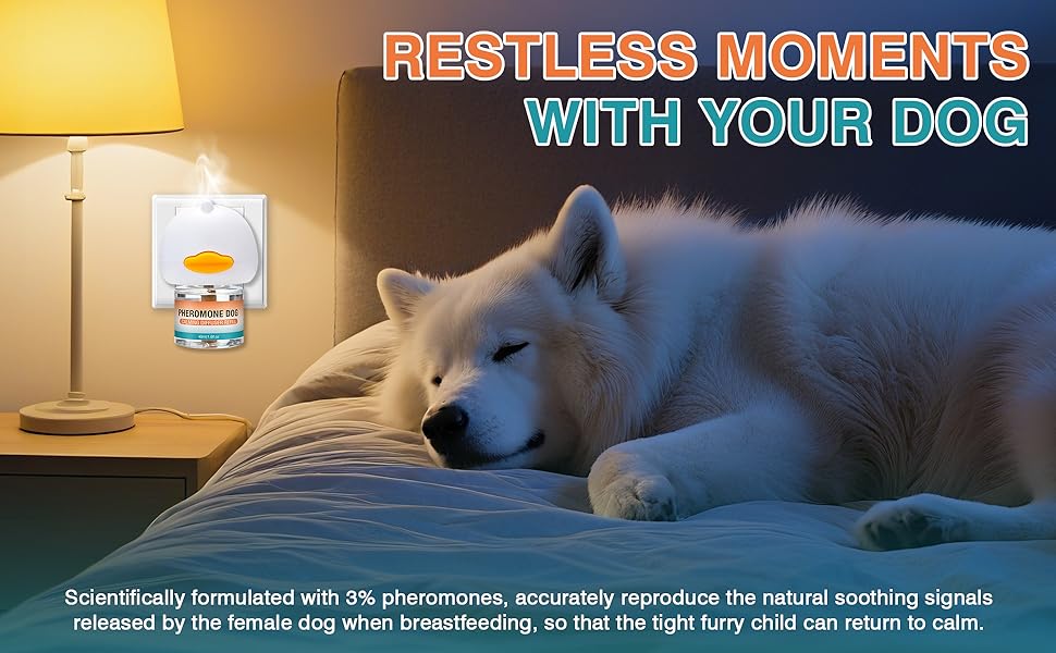 - Dog Calming Diffuser That Works In 2 weeks: Dog pheromones calming diffuser provides a effective solution to your dog's anxiety problems. Most pet owners reported that after using calming plug in for dogs for 2 weeks, the dog's barking was reduced, and even the destructive behavior caused by separation anxiety was significantly alleviated. Pheromone diffuser helps dogs regain peace of mind. Note: The effect of dog diffuser may vary depending on the dog's temperament and living environment